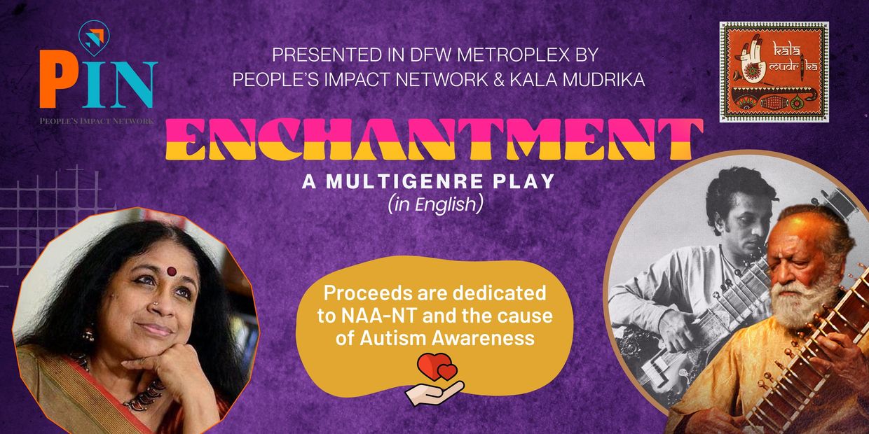 Enchantment blends the written text with live dancing and recorded music. The music features Pandit Ravi Shankar’s original sitar recordings, and his compositions rendered exclusively for Enchantment by Bombay Jayashri – with Aditya Prakash, Vignesh Ishwar and Chaitra Sairam.